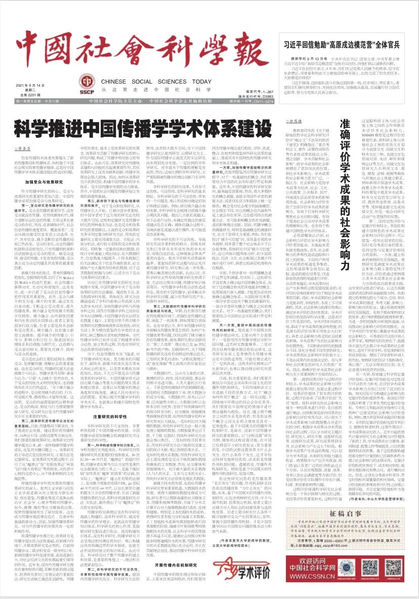 2021年9月14日,云南大学新闻学院院长廖圣清教授在《中国社会科学报》发表重要文章《科学推进中国传播学学术体系建设》。文章指出信息传播技术高速发展催生了新的传播格局和传播体系,如何基于中国社会现实探索传播学规律,这是对中国传播学学术体系建设提出的迫切问题。