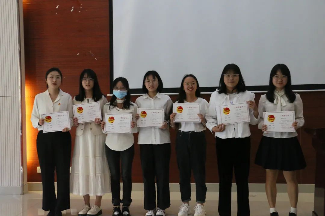 接着,新闻学院党委委员、专职组组员王婷婷老师宣读了表彰文件。本次共表彰红旗团支部5个、优秀共青团干部15人、优秀共青团员30人、第二课堂优秀工作者4人、优秀青年志愿者10人、优秀学生干部18人、优秀学生干事13人。出席大会的领导老师为受表彰的先进集体和个人颁奖。