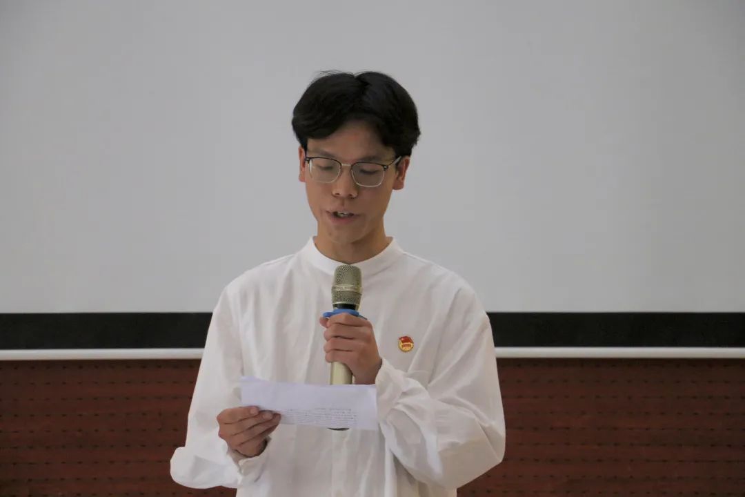 大会上,新闻学院2022级专硕团支部的全体团员带来朗诵节目《光荣啊,中国共青团》,以青春之名,诵出昂扬之诗!欣赏完朗诵节目之后,全体到会师生一同观看了2022-2023年新闻学院活动风采回顾短片。短片记录了新闻学院过去一年中以换届选举大会、迎新晚会、学术论坛等为代表的团学活动,充分展现出了新闻学院老师与学生们为学院发展建设所作出的努力与贡献。